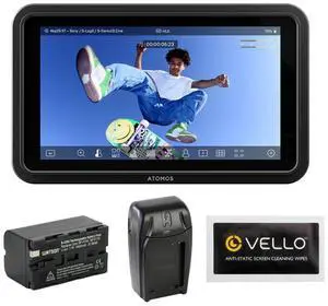 Atomos Shinobi GO 5 HDR Touchscreen Monitor 1500-Nit Bundle with Watson NP-F770 Lithium-Ion Battery Pack, Watson Compact Charger for L & M Series Batteries, Anti-Static Screen Cleaning Wipes (5-Pack)
