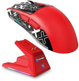 X1 Superlight Wireless Gaming Mouse with RGB Magnetic Charging Dock, BT/2.4G Wireless/Wired Gaming Mouse, PAW3395PRO Gaming Sensor, 40000DPI, Tape, 53g Office Mice for PC/Mac/Win/Xbox (Red)