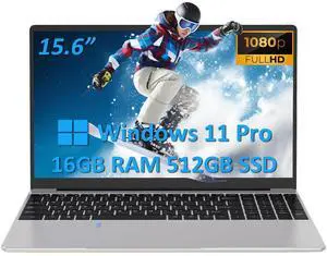 Auusda 15.6" Laptop Computer Notebook, 16GB RAM, 1TB NVMe SSD, 4-Core N95 Processor, FHD Display, Backlit Keyboard, Fingerprint, Webcam, Bluetooth, WiFi, Win 11 Pro, 10TB Upgradeable; T152A, Silver