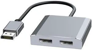 XinYaa Displayport to Dual DisplayPort Splitter Adapter,4K60Hz MST Displayport hub 1 in 2 Out Display Port for Dual Monitors, DP1.4 Display Port Splitter for Desktop, Laptop,Extend Display-Grey