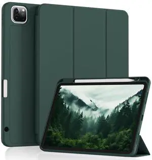 SQQSOOZ Case for iPad Pro 11 4th Gen 2022/3rd Gen 2021/2nd Gen 2020 with Pencil Holder, Support Pencil Charging, Soft TPU Back Cover, Three-Stage Folding Support, Auto Sleep/Wake, Dark Green