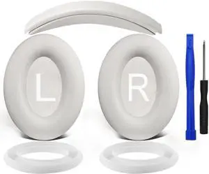 SOULWIT Replacement Kit for Bose QuietComfort 45 (QC45)/Quiet Comfort 35 (QC35, QC35II)/QC SE/QC Wireless Headphones, Ear Pads Cushions + Headband + Silicone Earpads Cover Protector - White Smoke