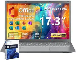 Soulgenix 17 17.3 Inch HD+ Display Laptop Computer, 11 Pro OS with MS Office Inlcuded, 16GB LPDDR4 RAM, 1TB SSD, 12th N100 Processor, Backlit Keyboard, Fingerprint, Type-C, USB 3.2 Ports, Gray