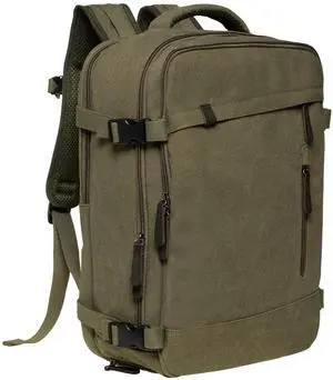 KAUKKO Thick Canvas Travel Backpack, Flight Approved Carry On Backpack with Shoe Pouch and 15.6 inch Laptop Compartment, 40L Luggage Casual Daypack Weekender Bag 10-ARMYGREEN