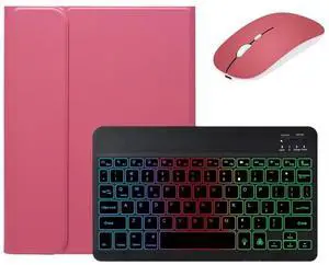 Bxomteng Keyboard Case for Samsung Galaxy Tab S6 Lite 10.4 inch - 7 Colors Backlit Keyboard Cover and Mouse (Pink)