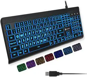 X9 Large Print Backlit Computer Keyboard - Easy to See Big Letters - Lighted USB Wired Keyboard with 7-Colors Backlight LED, Full Size Oversized Light Up Keyboard for Windows, PC, Laptop, Desktop