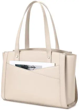 LOVEVOOK Laptop Tote Bag for Women - PU Leather Vintage Work Tote Bag,Waterproof Business Teacher Bag with Large Cup Holder
