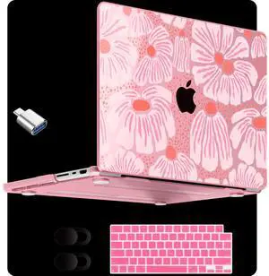 MEEgoodo Case for MacBook Pro 14 inch (M5/M4/M3/M2/M1) 2025 2024 2023 2021, Laptop Hard Shell Case Fit Model A3434/A3112/A3401/A3185/A2918/A2992/A2779/A2442 Pro/Max, Pink Style Floral