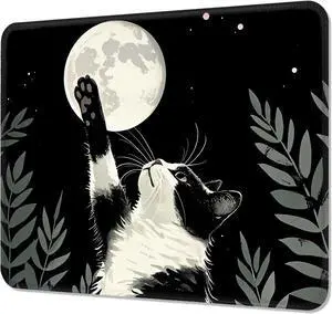 Mouse Pad Square Cute Mouse Pad 10 x 8 Inch Waterproof Premium-Textured & Stitched Edge Computer Mat with Non-Slip Rubber Base for Office Home Gaming Laptop Black Cat and Moon