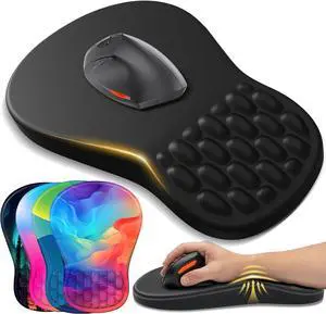 Ergonomic Mouse Pad Wrist Support with Memory Foam Massage Bulge Carpal Tunnel Pain Relief Mousepad Wrist Rest for Mouse(12x8 inch Black)