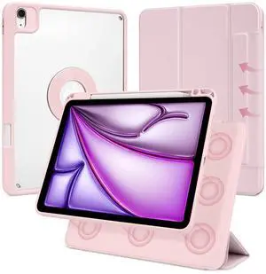 Wenlaty for iPad Air 11 inch Case (M3/M2) & Air 5th/4th Generation Case 10.9 inch, for iPad Pro 11 inch 4/3/2/1 Gen,360 Rotating Cover,Detachable Magnetic Back,Pencil Holder,Auto Sleep/Wake,Pink