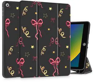 Mektron Designed Printed iPad 10.2" Case 9th Gen (2021)/ 8th Gen (2020)/ 7th Gen (2019) with Pencil Holder, Slim Protective Case with Soft TPU Back, Auto Wake/Sleep for iPad 10.2 Inch, Curvy Bows
