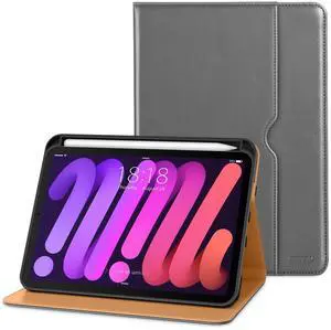 DTTO for iPad Mini 7th (A17 Pro) 2024/iPad Mini 6th Generation Case 2021 8.3 Inch, Premium Leather Business Folio Stand Cover for Mini 7/6 with Pencil Holder-Multiple Viewing Angles, Gray
