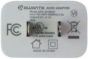 Awanta 5V/2.1A USB-A AC/DC Adapter Wall Charger (AWA-3518WH) - White