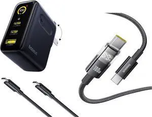 Baseus Picogo 100W USB C Charger and Baseus Braided USB C Cable 100W with LED Display