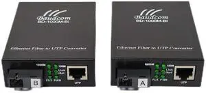 Baudcom a Pair Gigabit SingleMode Fiber to Ethernet Media Converter, Single Fiber, 1000Base-LX to 10/100/1000Base-Tx Gigabit SMF Fiber SC to Copper RJ45 Ethernet Converter, Bidi, 20KM