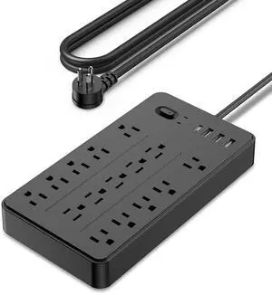 Power Strip, Surge Protector with 15 Outlets and 4 USB Ports, 5 Feet Extension Cord (1875W/15A), 2700 Joules, Black