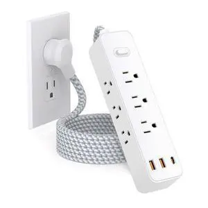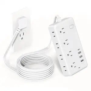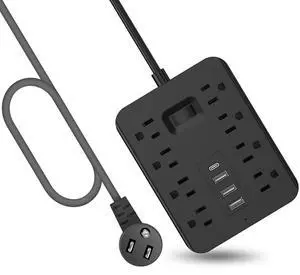 12-in-1 Power Strip with Surge Protection And One-Touch Control Switch - 8 AC with 4 USB Ports ( 1 Type-C) - Wall-Mountable Extension Cord for Office, Study, Home, And School Use