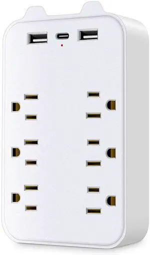 Basics 6 Outlet Extender Splitter with 3 USB Wall Charger(2 USB-C Ports), Multi Plug Outlet Power Strip for Home Ports 2.4A, Dorm Room Essentials