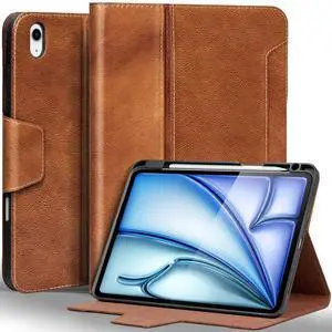 Gexmil Leather Case for iPad Air 11 Inch M3 2025/ M2 2024,iPad Air 10.9 Inch Case 5th/4th Generation 2022/2020, Top Grain Leather Cover with Pencil Holder,Magnetic Closure,Brown Vegetable-Tanned