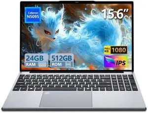 Omnica 2025 Gaming Laptop, 15.6" Laptop Computer with 24GB DDR4 512GB SSD, N5095 Quad-Core up to 2.9GHz, Portable Laptop with Backlit Keyboard, Fingerprint, FHD 1920 * 1200, WiFi5, BT4.2, Win 11 Pro