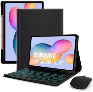 LAMA 7 Colors Backlit Keyboard Case with Mouse for Samsung S6 Lite 10.4 Inch 2020/2022/2024, Detachable Keyboard Case for Galaxy S6 Lite 10.4", Rechargeable Keyboard+Thin Case+Wireless Mouse, Black
