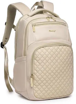 LOVEVOOK 15.6 Inch Laptop Backpack for Women,Large Capacity Work Backpack Purse for Women,Waterproof Travel Day Pack for Teacher Nurse,Khaki-Beige