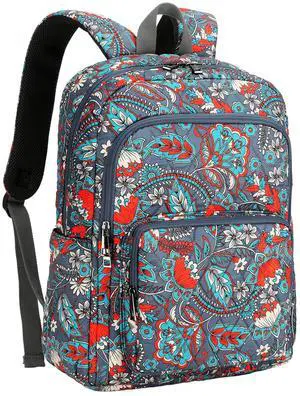 Searock Quilted Backpack for Women, Floral Backpack for School Girls, Cotton Lightweight Bookbag for Travel, Work Orange