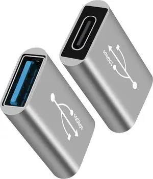 USB 3.0 to USB C 3.1 Adapter 2 Pack 10Gbps Double Sided Data Transfer Bi-Directional Type-C (Female) to Type-A (Female) On The Go (OTG) Converter Connector Support Charging & Data Sync for Laptop PC