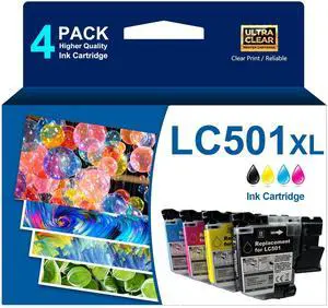 LC501XL LC501 High Yield Ink Cartridge 4-Pack (Black,Cyan,Yellow,Magenta) Replacement for Brother LC501 XL MFC-J1260DW MFC-J1360DW MFC-J1410DW Printer