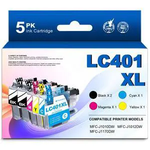 Obuweu LC401XL 5PK High Yield Ink Cartridges (2BK/1C/1M/1Y) Replacement for Brother LC401XL LC401 to use with MFC-J1010DW MFC-J1012DW MFC-J1170DW Printers, 5-Pack