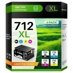 Skydo 712XL 712 Ink Cartridges Combo 4 Pack Replacement for HP 712 Ink Cartridges Use with DesignJet T210 T630 T650 T250 T230 Studio Plotter Printer (Black Cyan Magenta Yellow)