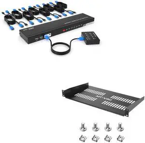 1 Pack 1U 19'' Rack Shelf + 8 Port HDMI KVM Switch