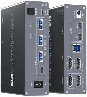 4K Kvm Switch 2 Monitors 2 Computers 4K@60Hz HDMI Displayport Dual Monitor KVM Switches 2 Ports for 2 PC Share Mouse Keyboard and 2 Screens with USB 3.0 Cables and Extended Controller