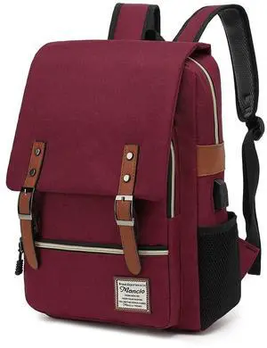 Mancio Vintage Slim Laptop Backpack for Women Men,Tear Resistant Business College Bag with USB Charging Port,Fits up to 15.6Inch Laptop in Red