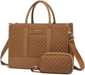 LOVEVOOK Laptop Bags for Women, 15.6 inch Waterproof Work Tote Bag with Clutch, Professional Teacher Computer Purse Lightweight Shoulder Bag Travel, Quilted Brown