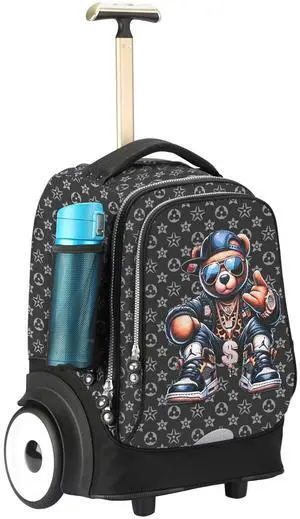 UNIKER Rolling Bag with Wheels, 40L Water Resistant Wheeled Laptop Backpack, Silent Wheel Travel Backpack for Women Men,T5- Fortune Bear