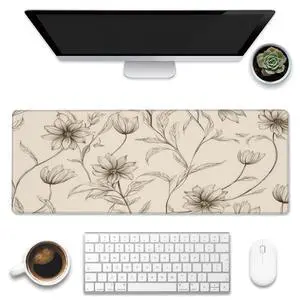 XL Mouse Pad,Minimalist Flowers Large Gaming Mouse Pad,Abstract line Floral Desk Mat for Desktop,Extended Big Computer Keyboard Desk Pad with Non-Slip Base and Stitched Edges 31.5"x11.8"