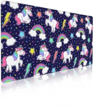 Cute Unicorn Mouse Pad Gaming,Color Rainbow Mousepad Desk Mat,Smoothing Fabric Mousepad for Fluid Control,Ultra-Stable Non-Slip Rubber Base Mouse Pad,Stitched Edges(31.5x15.7 in)