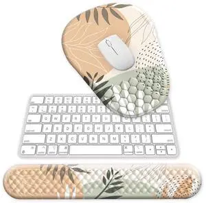 Ergonomic Mouse Pad, Mouse Pad Wrist Support & Keyboard Wrist Rest with Comfortable Memory Foam Massage Bulge Wrist Rest and Non-Slip PU Base for Pain Relief, Office, Home (Minimalist Plant)