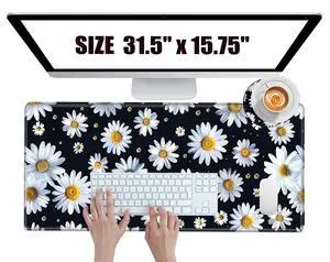 Large Mouse Pad Gaming Desk Pad Daisy Mousepad for Wireless Mouse XXL 31.5''X15.75'' Big Desk Mats Extended Mouse Mat of Girl Desktop Computer with Coaster