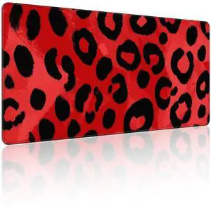 KOBWOPI 35.4 x 15.7 in, XXL Large Mouse Pad for Desk, Extended Keyboard Mouse Mat for Computer Office, Big Mouse pad with Stitched Edges, Gaming Pc-Red and Black Leopard Print