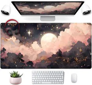 Pink Black Clouds Desk Mat XXL Large Extended Gaming Mouse Pad Celestial Mousepad with Stitched Edges, Office Desktop Decor Desk Pad Computer Mat, Laptop Keyboard and Mouse Mat, 31.5x15.75 in