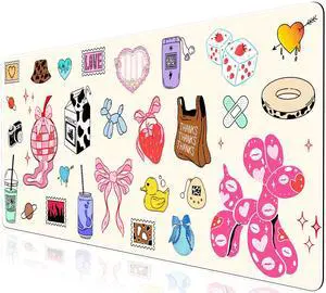 L-SPOUTTO Cute Desk Mat for Keyboard and Mouse,XXL Large Gaming Mouse Pad,35.4x15.7in Non-Slip Keyboard Pad Waterproof Girly Mousepad Desktop Mat for Laptop Computer Work Game Home Office-Cartoon