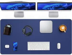 CEBOWA Large Desk Pad Mat - Waterproof Mouse Pad & Desk Protector, Non-Slip XL PU Leather Gaming Mat for Keyboard/Mouse, Stitched Edge with Ergonomic Support, 47"x17" (Blue)