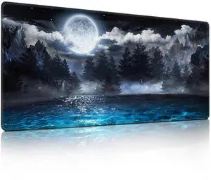 Moonlit Night Landscape Mouse Pad, Scenic Night Sky with Full Moon Mousepad - Large Non - Slip Desk Mat for Office, PC & Laptop - 35.5"x15.7" x 3mm