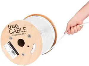 TRUE CABLE Cat6A Direct Burial Bulk Ethernet Cable, 500ft, White, Waterproof, Outdoor Rated OSP, 23AWG Solid Bare Copper, 750MHz, PoE++ 100W, Unshielded UTP