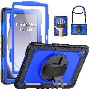SEYMAC Case for Samsung Galaxy Tab A9+/ A9 Plus 11" (SM-X210/X216/X218), Heavy Duty Shockproof Protective Case with Screen Protector, Rotating Stand, Hand/Shoulder Strap and Pen Holder, Blue