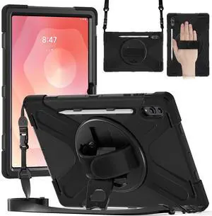 NINKI for Samsung Galaxy Tab S11 Ultra Case Stand 2025, (Strap & Pencil Holder) Shockproof Soft Silicone TPU + PC Protective Cover Cross-Body Lanyard for Samsung Tab S11 Ultra Case 14.6 inch Black
