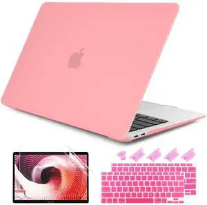 DONGKE Compatible with MacBook Air 13 inch Case 2021 2020 2019 2018 Release Model: M1 A2337 A2179 A1932, Matte Hard Case Cover for MacBook Air 13 inch with Retina Display Fits Touch ID - Pink